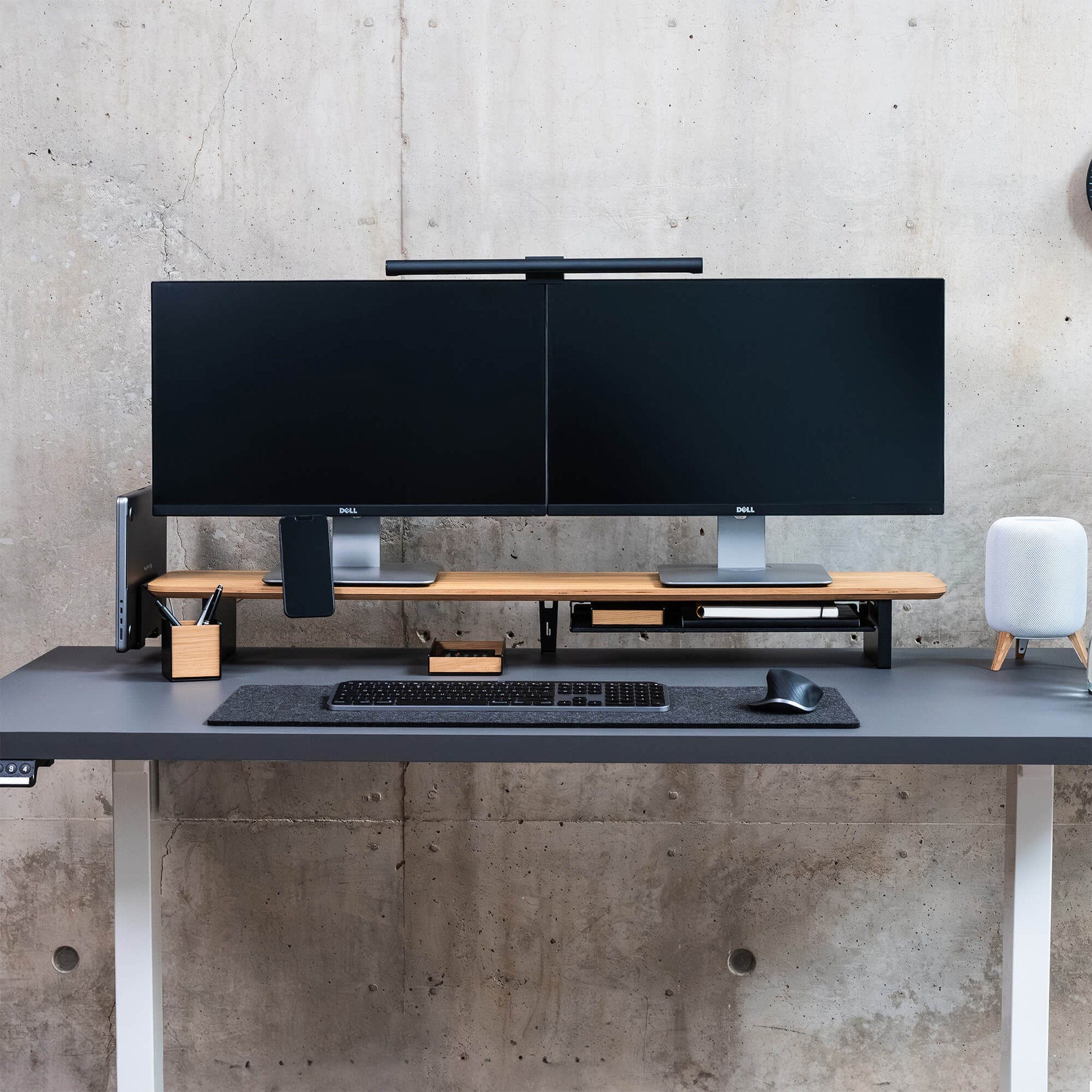 Niet lachen, maar ik ga een monitorverhoger tippen. De Setup Cockpit van Balolo zet je beeldscherm iets hoger op je bureau, maar het bijzondere zit aan de onderzijde. Daar zitten allerlei schroefdraden waar je hun bijbehorende accessoires op kunt schroeven.